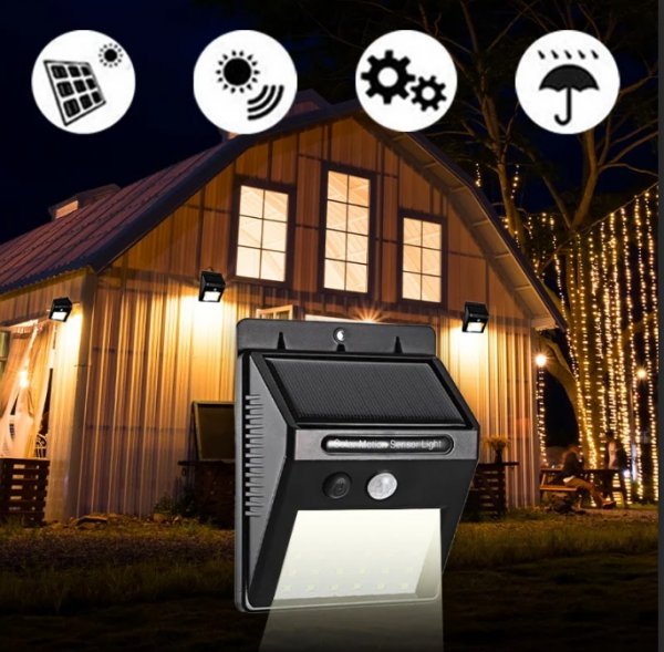 مصباح شمسي بحساس حركة - للإضاءة الخارجية الموفرة للطاقة